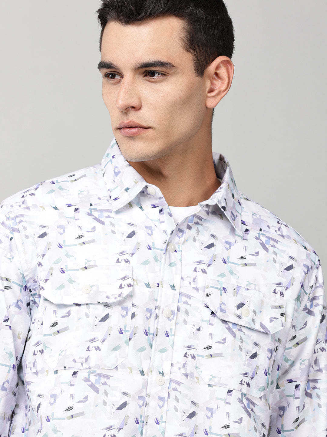 The ENOVATE Abstract Print Double Pocket Shirt adds a touch of art-inspired edge to your wardrobe. Featuring a unique brushstroke-style abstract pattern on a crisp white base, this shirt blends creativity with clean structure. With a relaxed silhouette, button-down front, and twin chest pockets, it’s designed to transition easily from smart-casual to street-smart.